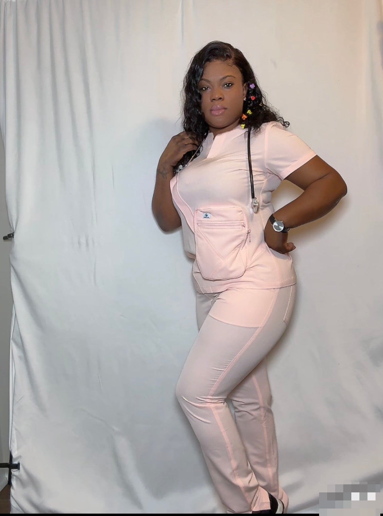 Maximum impact. The Sophia Scrub Set features a sleek crew neck top, flattering straight-leg pants, and a built-in side purse that keeps your essentials close without the bulk. Made from a soft, stretchy blend that moves with you, Sophia is perfect for healthcare pros who want comfort, style, and convenience—all in one look.